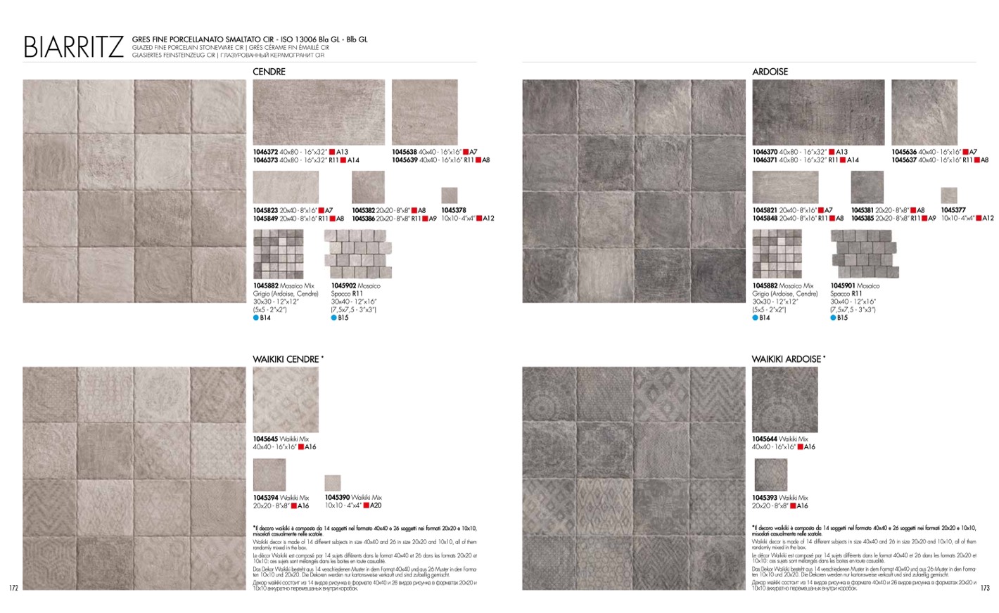 Das Dekor Waikiki besteht aus 14 verschiedenen Muster in dem Format 40x40 und aus 26 Muster in den Forma-