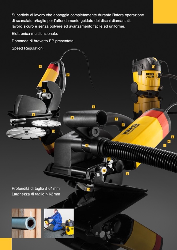 di scanalatura/taglio per l’affondamento guidato dei dischi diamantati,