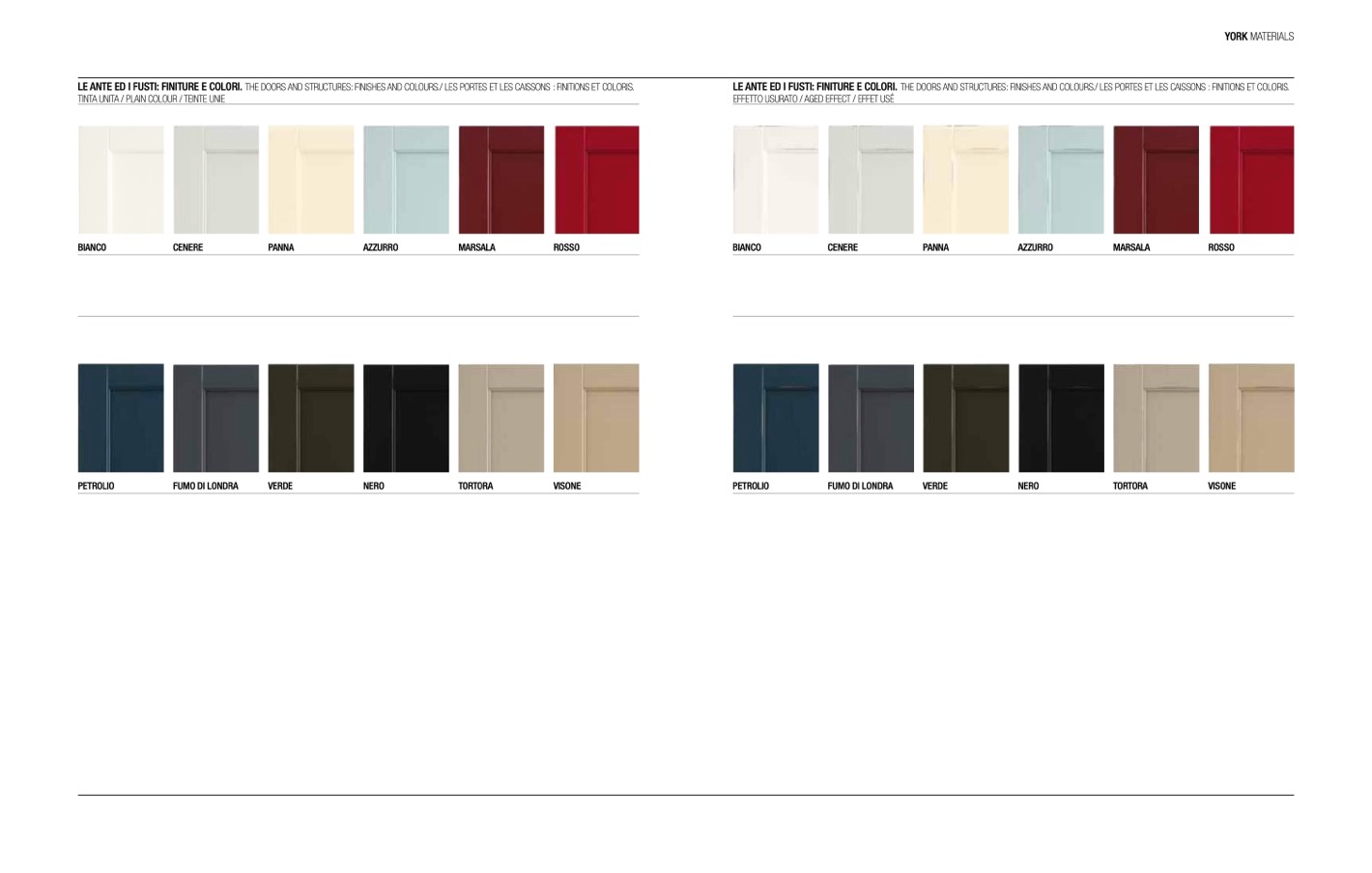 LE ANTE ED I FUSTI: FINITURE E COLORI. THE DOORS AND STRUCTURES: FINISHES AND COLOURS./ LES PORTES ET LES CAISSONS : FINITIONS ET COLORIS.