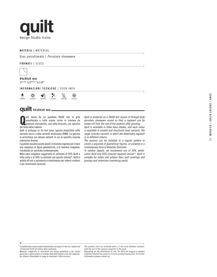 Nella posa irregolare suggeriamo di utilizzare al 50% Quilt a