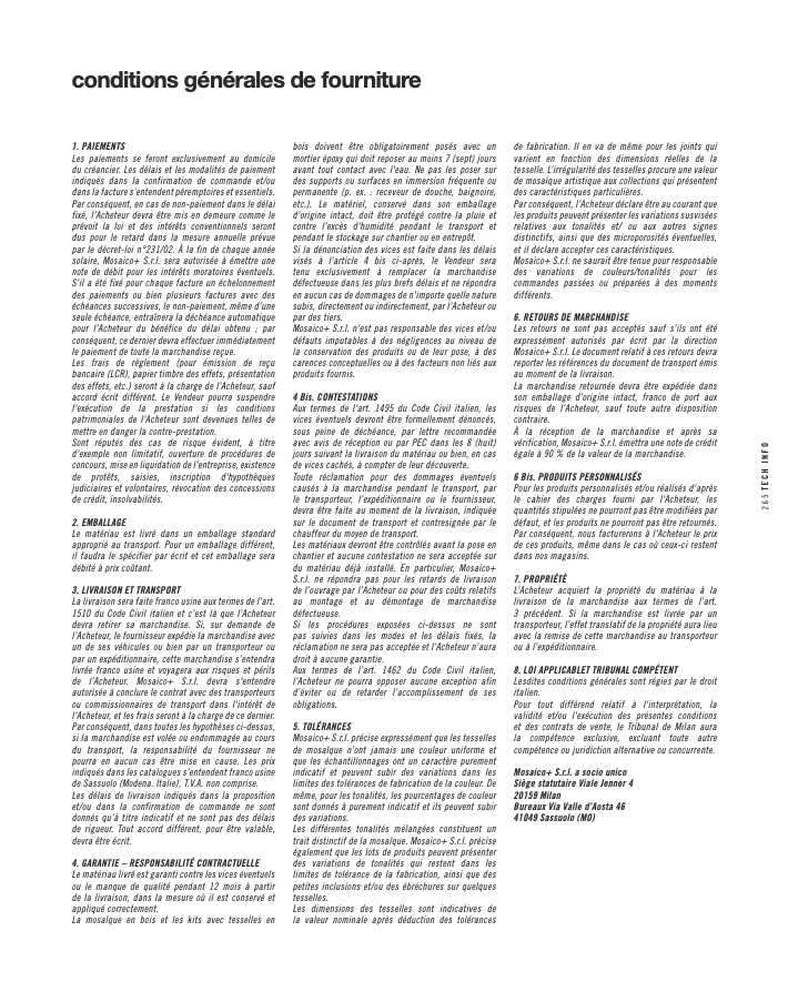 Mosaico+ S.r.l. n'est pas responsable des vices et/ou