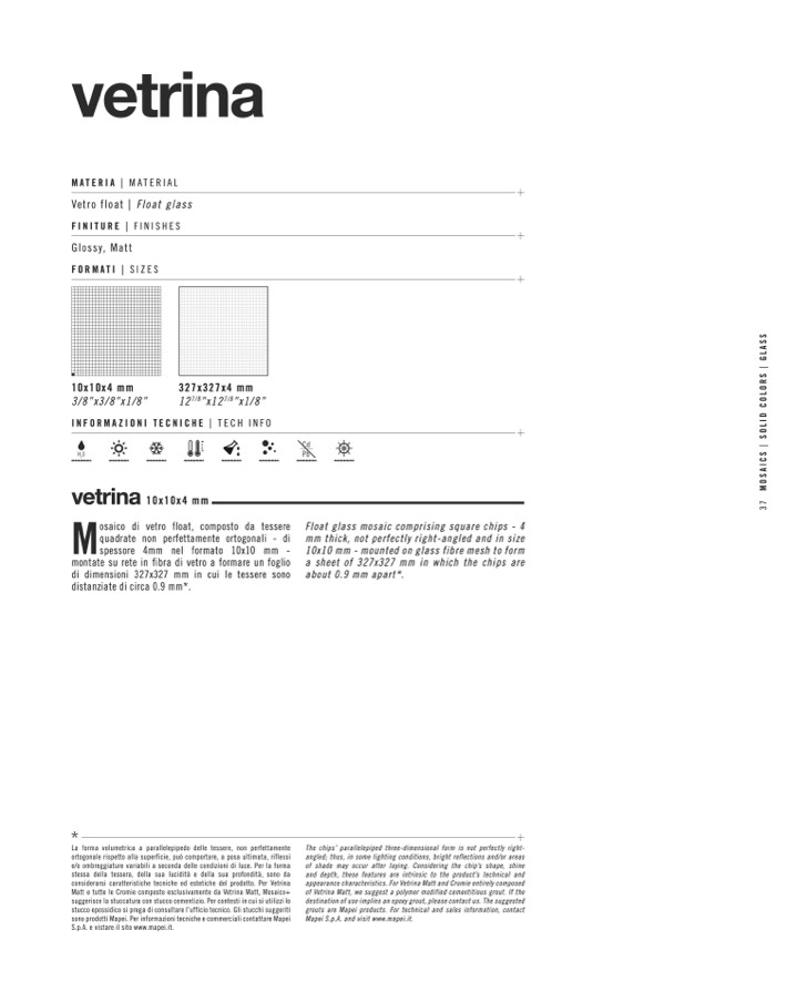 appearance characteristics. For Vetrina Matt and Cromie entirely composed