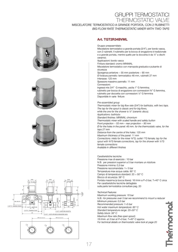 For technical details on thermostatic valve look at page 20