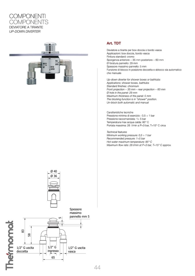 Minimum working pressure: 0,5 ÷ 1 bar