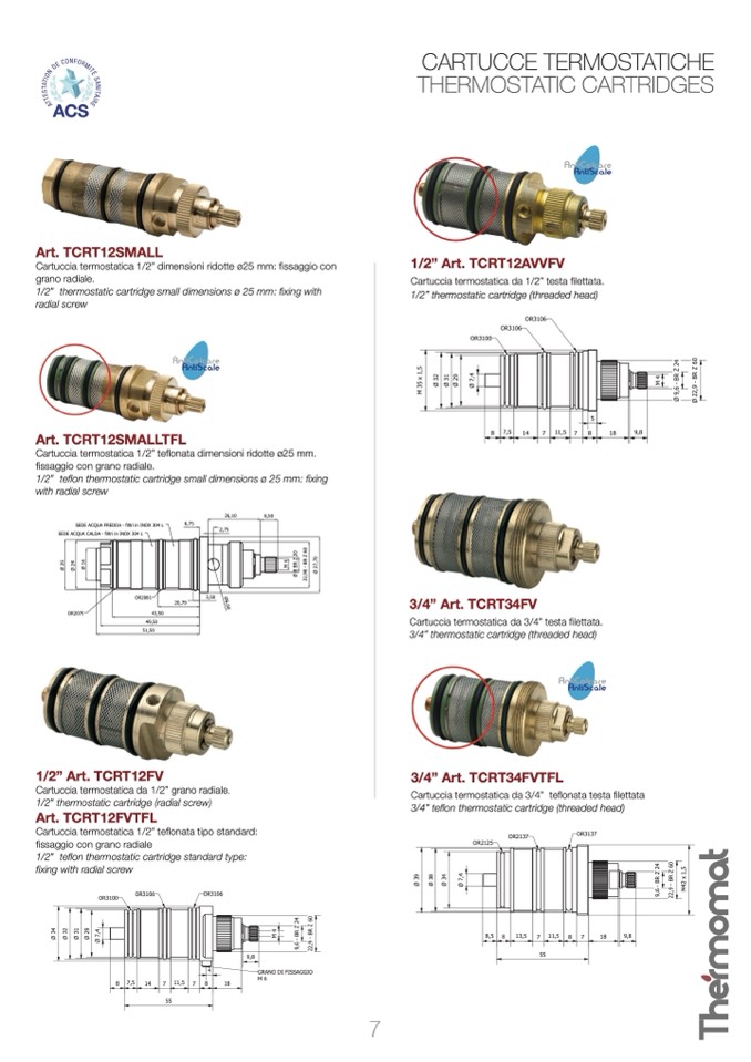 1/2” teflon thermostatic cartridge standard type: