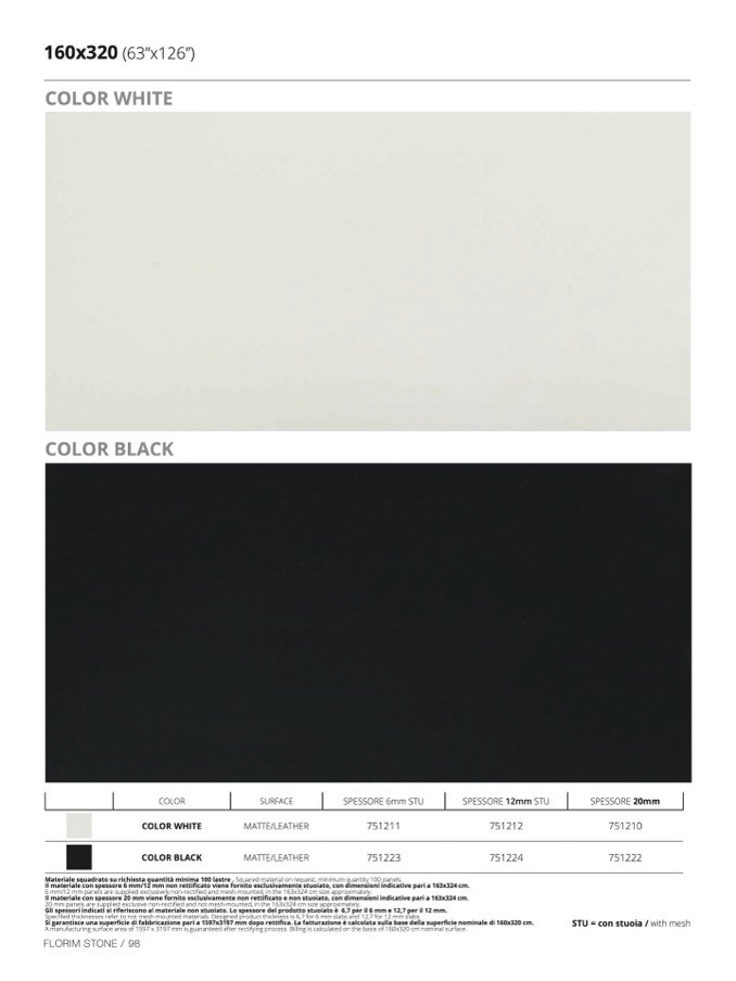 facturing surface area of 1597 x 3197 mm is guaranteed after rectifying process. Billing is calculated on the basis of 160x320 cm nominal surface