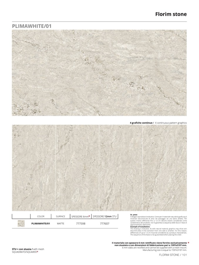 non stuoiato e con dimensioni di fabbricazione pari a 1597x3197 mm