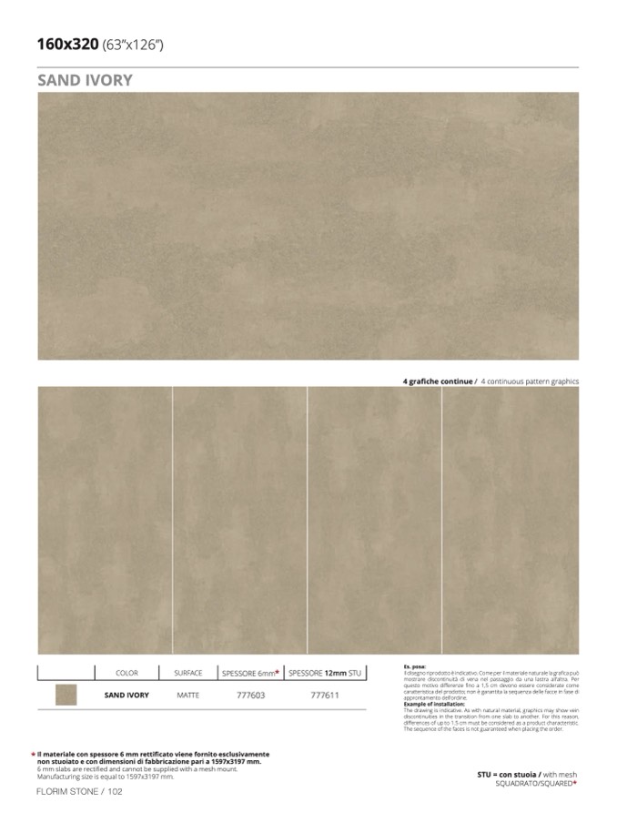 non stuoiato e con dimensioni di fabbricazione pari a 1597x3197 mm