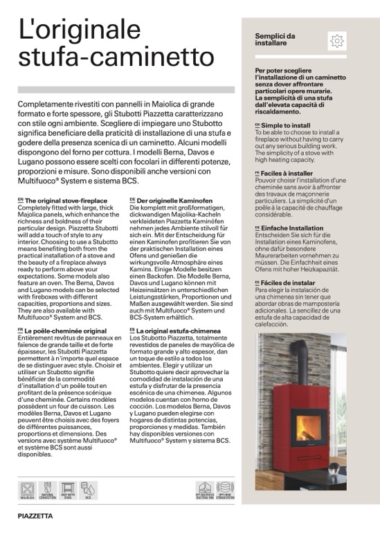 Lugano possono essere scelti con focolari in differenti potenze,