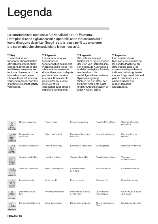 icone di seguito descritte. Scegli la stufa ideale per il tuo ambiente