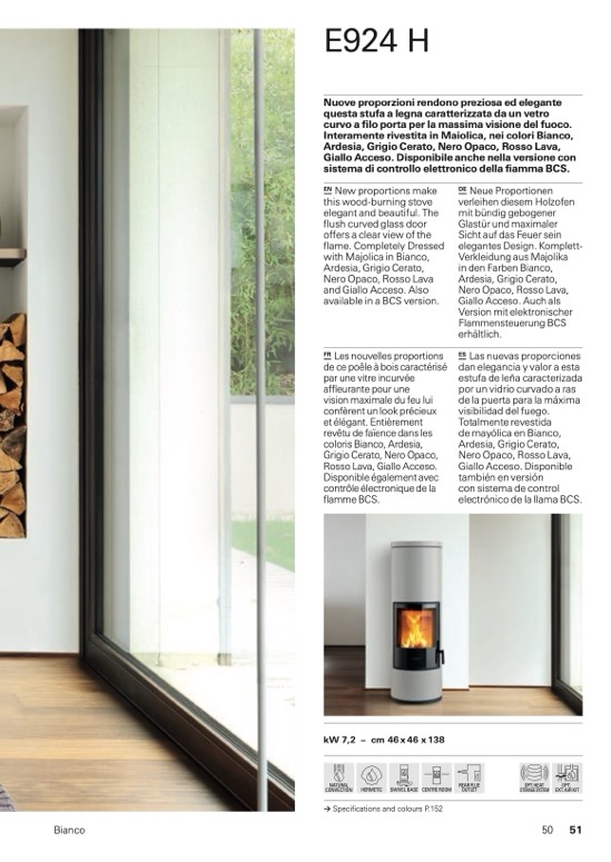 curvo a filo porta per la massima visione del fuoco.