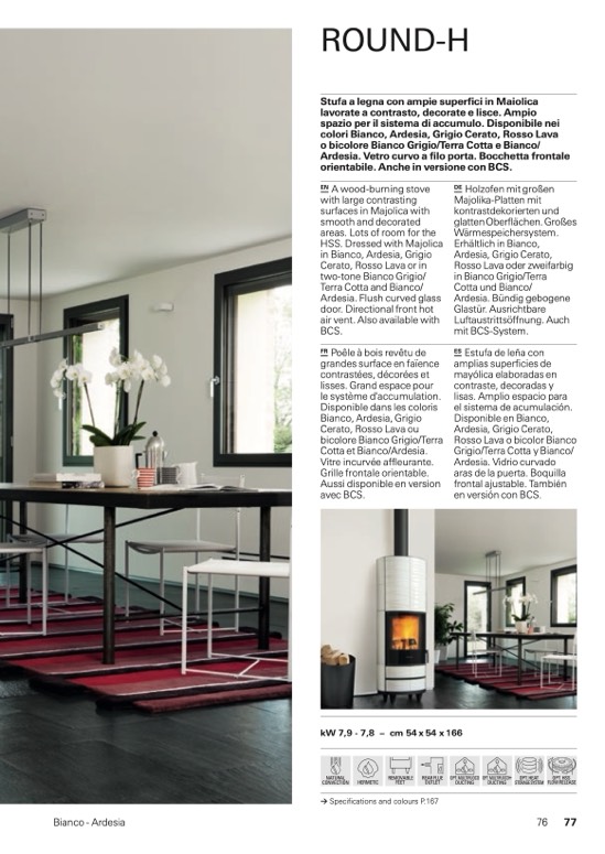 Stufa a legna con ampie superfici in Maiolica