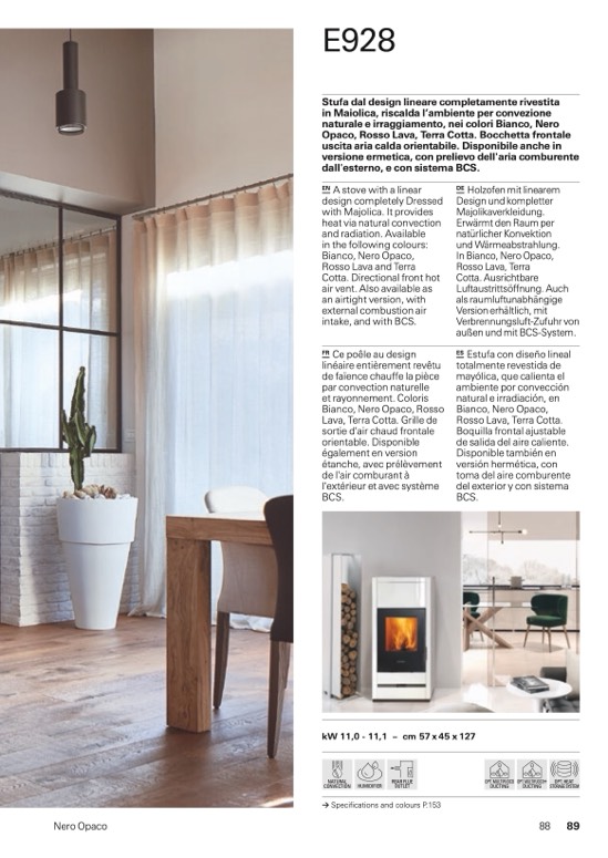 Stufa dal design lineare completamente rivestita