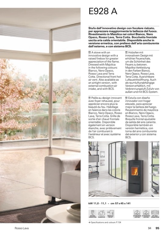 Stufa dall’innovativo design con focolare rialzato,
