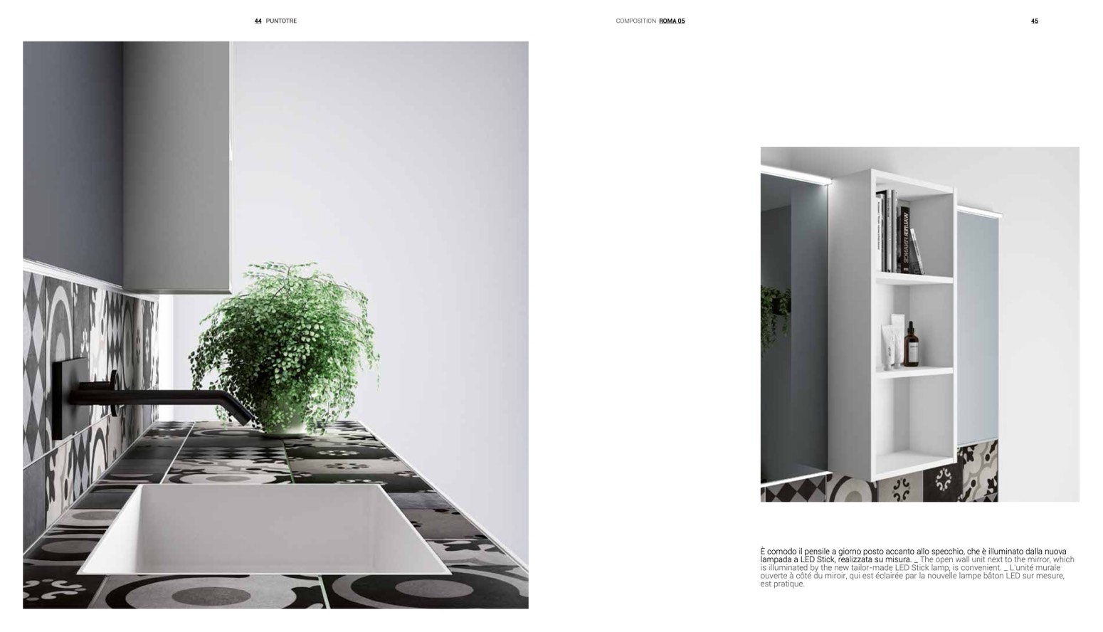 lampada a LED Stick, realizzata su misura. _ The open wall unit next to the mirror, which