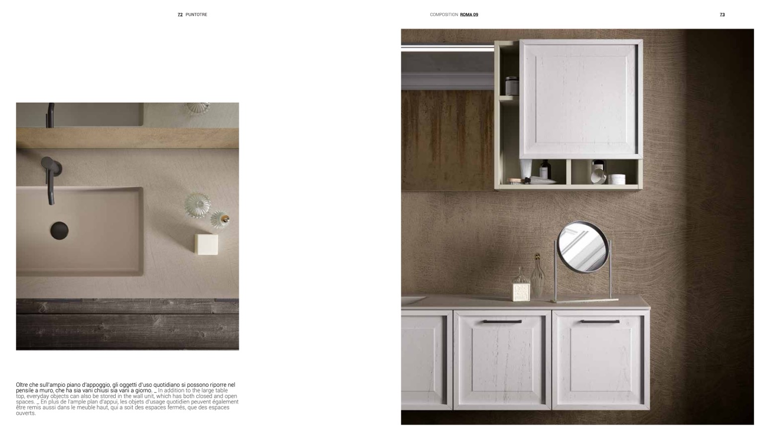 Oltre che sull’ampio piano d’appoggio, gli oggetti d’uso quotidiano si possono riporre nel