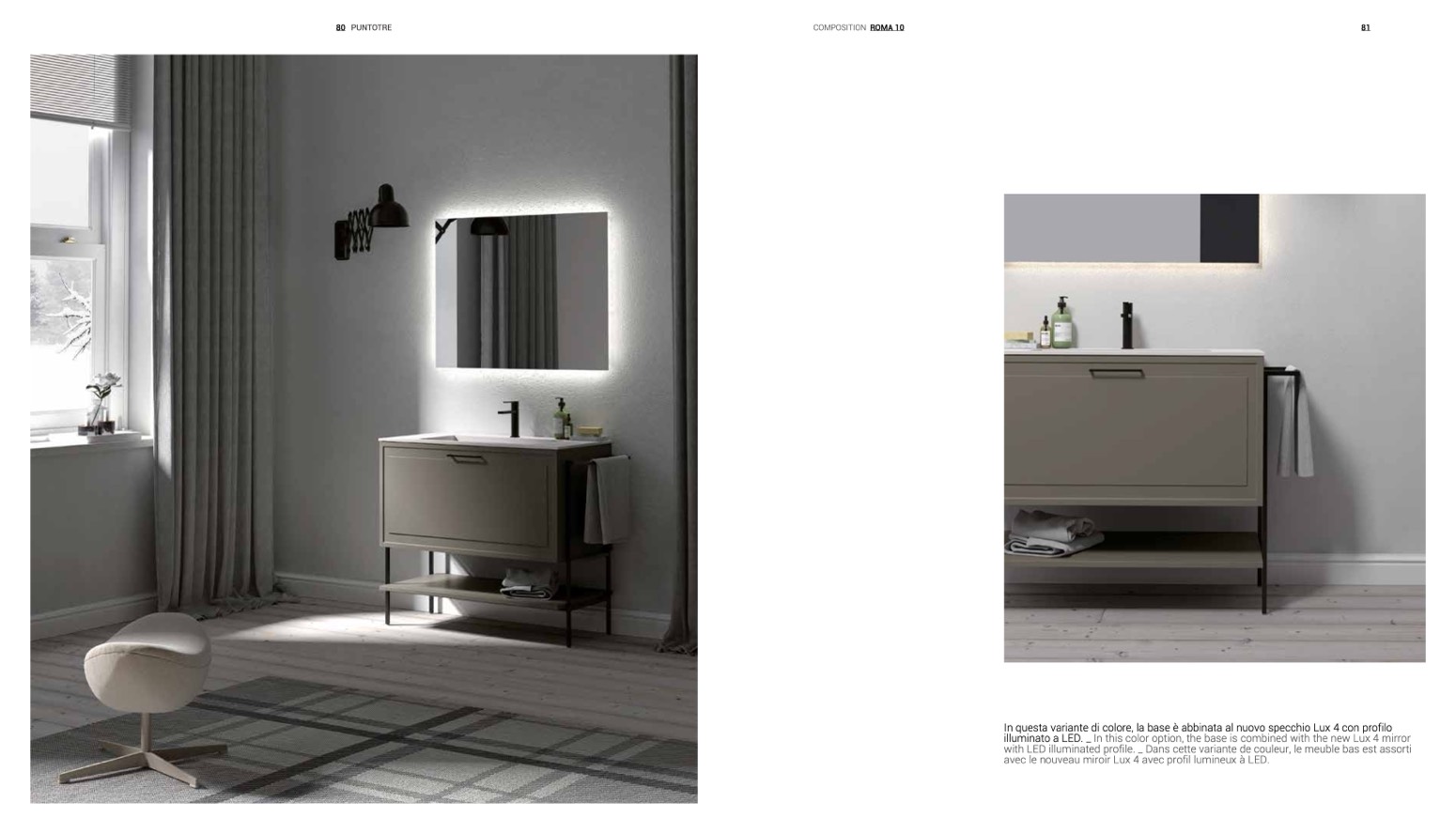 In questa variante di colore, la base è abbinata al nuovo specchio Lux 4 con profilo