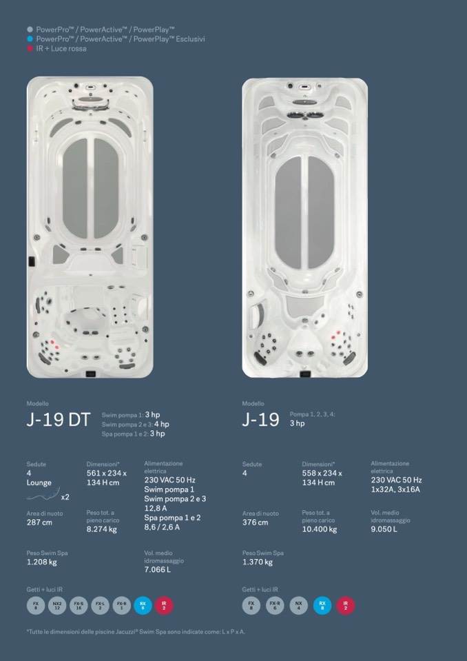 *Tutte le dimensioni delle piscine Jacuzzi® Swim Spa sono indicate come: L x P x A.