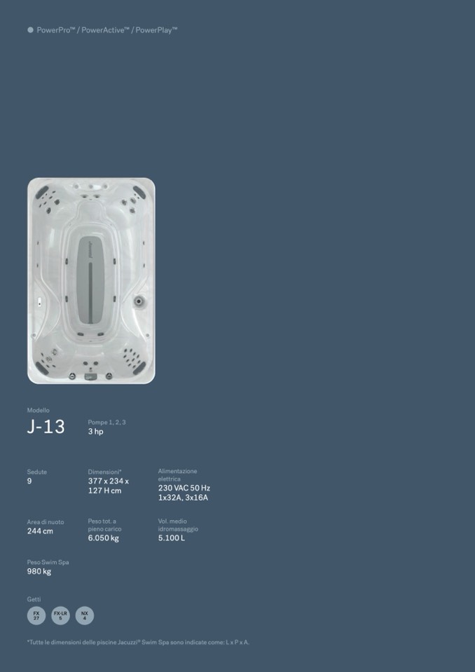 *Tutte le dimensioni delle piscine Jacuzzi® Swim Spa sono indicate come: L x P x A.