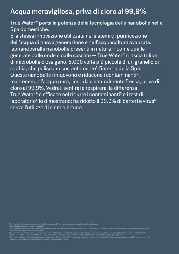 ⁴ I test di efficacia antimicrobica sono stati dimostrati utilizzando un progetto di spa simulato per uno studio di laboratorio in uso, basato sulle linee guida degli Standard