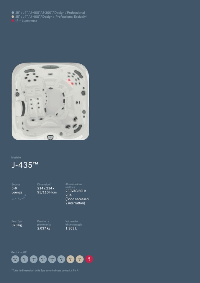 *Tutte le dimensioni delle Spa sono indicate come: L x P x A.