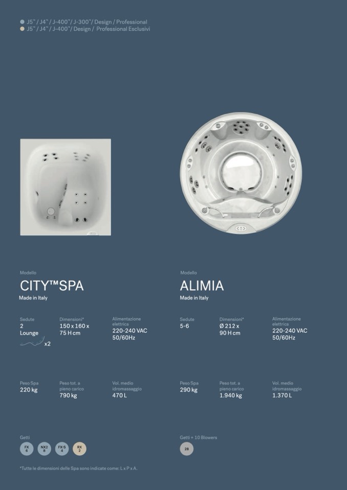 *Tutte le dimensioni delle Spa sono indicate come: L x P x A.