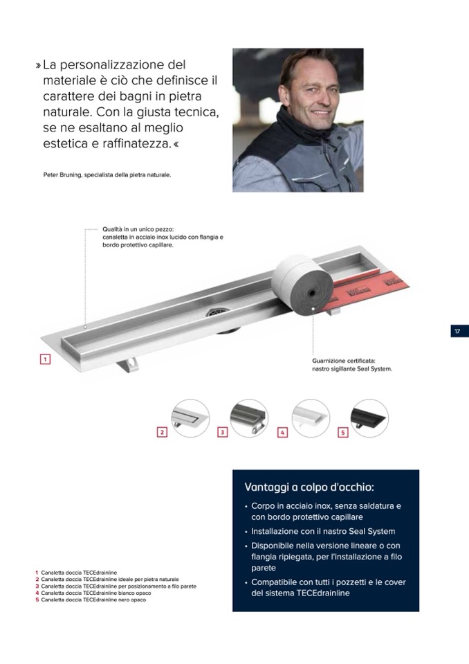 2 Canaletta doccia TECEdrainline ideale per pietra naturale
