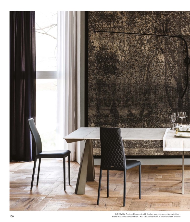 FISHERMAN wall lamps in black - KAY COUTURE chairs in soft leather 956 atlantico