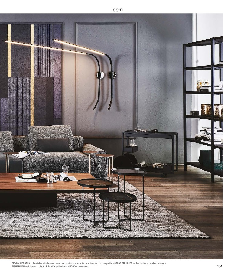FISHERMAN wall lamps in black - BRANDY trolley bar - HUDSON bookcase