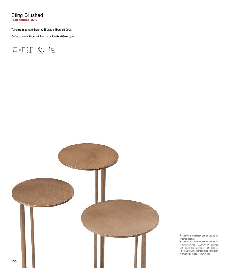 Tavolino in acciaio Brushed Bronze o Brushed Grey.