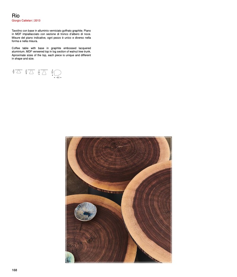 aluminium. MDF veneered top in log section of walnut tree trunk.