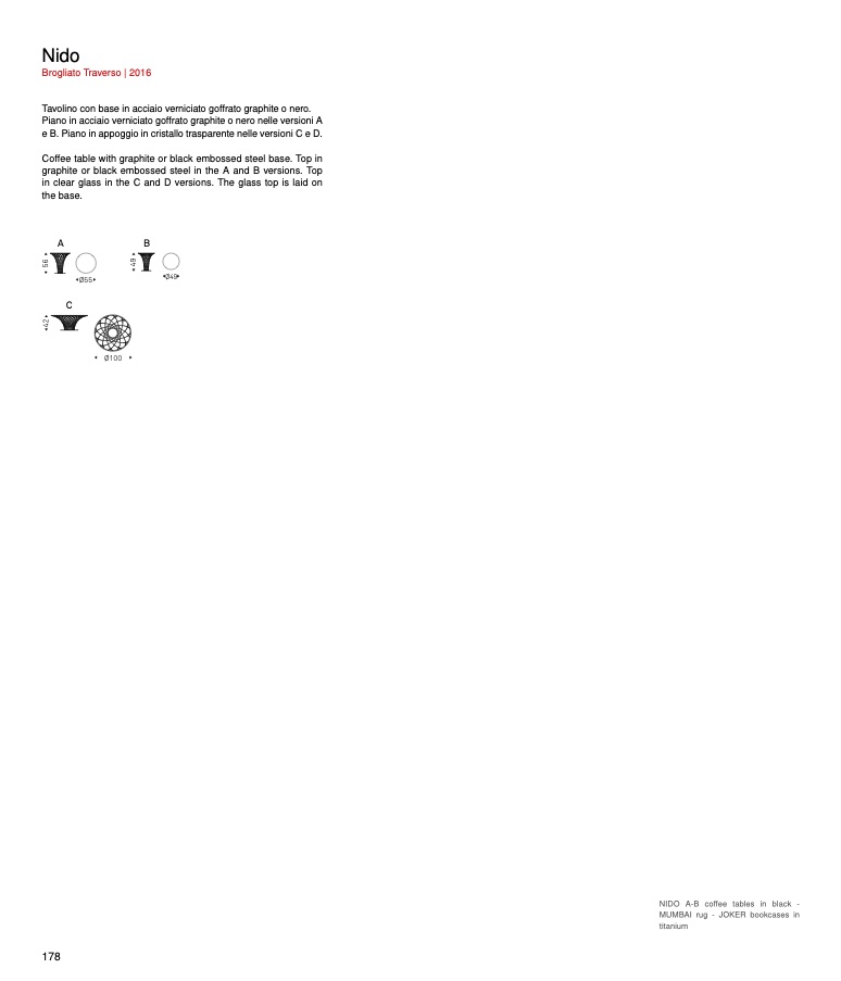 in clear glass in the C and D versions. The glass top is laid on