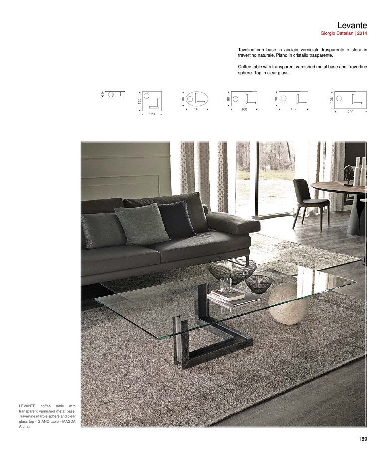 Tavolino con base in acciaio verniciato trasparente e sfera in