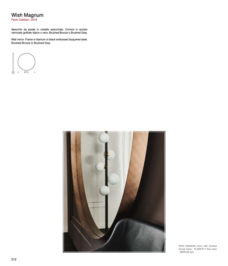 Wall mirror. Frame in titanium or black embossed lacquered steel,