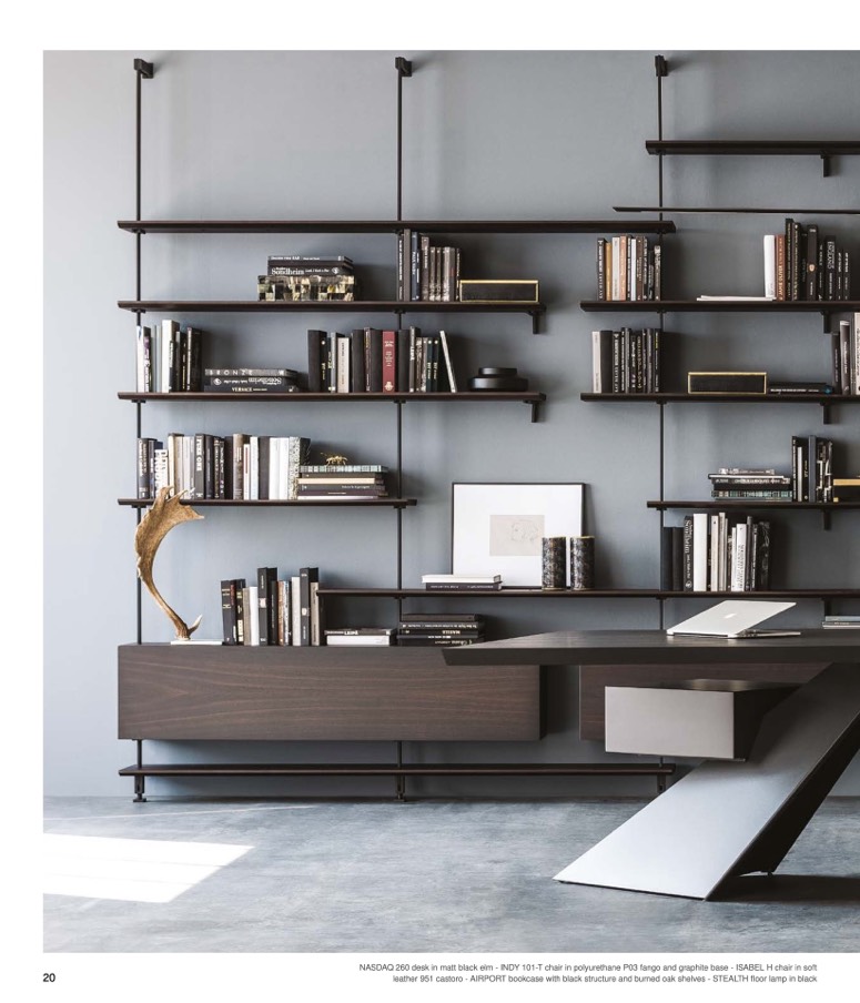 leather 951 castoro - AIRPORT bookcase with black structure and burned oak shelves - STEALTH