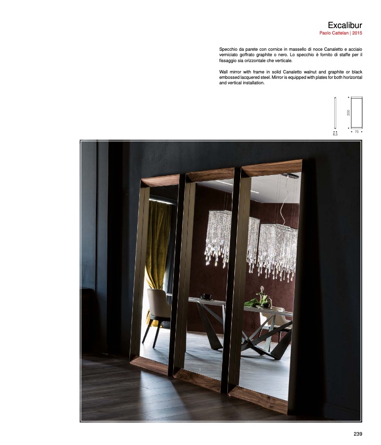 Specchio da parete con cornice in massello di noce Canaletto e acciaio