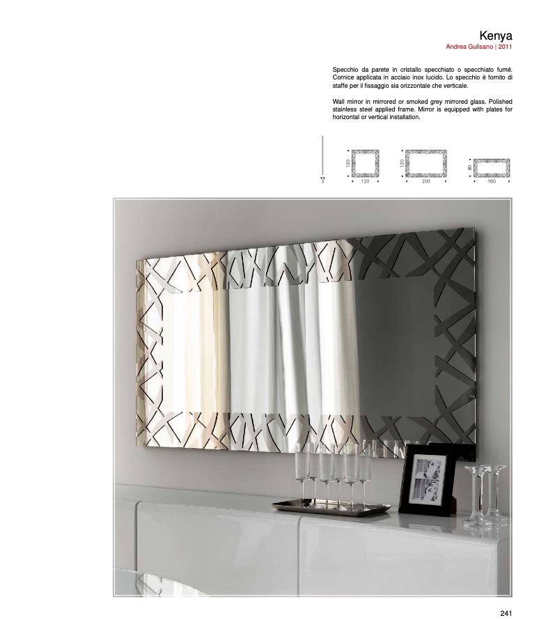 Wall mirror in mirrored or smoked grey mirrored glass. Polished
