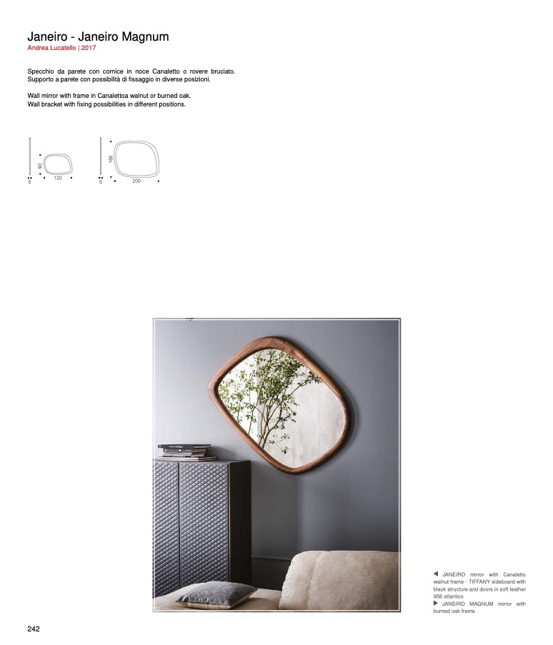Wall mirror with frame in Canalettoa walnut or burned oak.