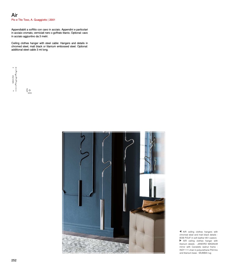 Ceiling clothes hanger with steel cable: Hangers and details in