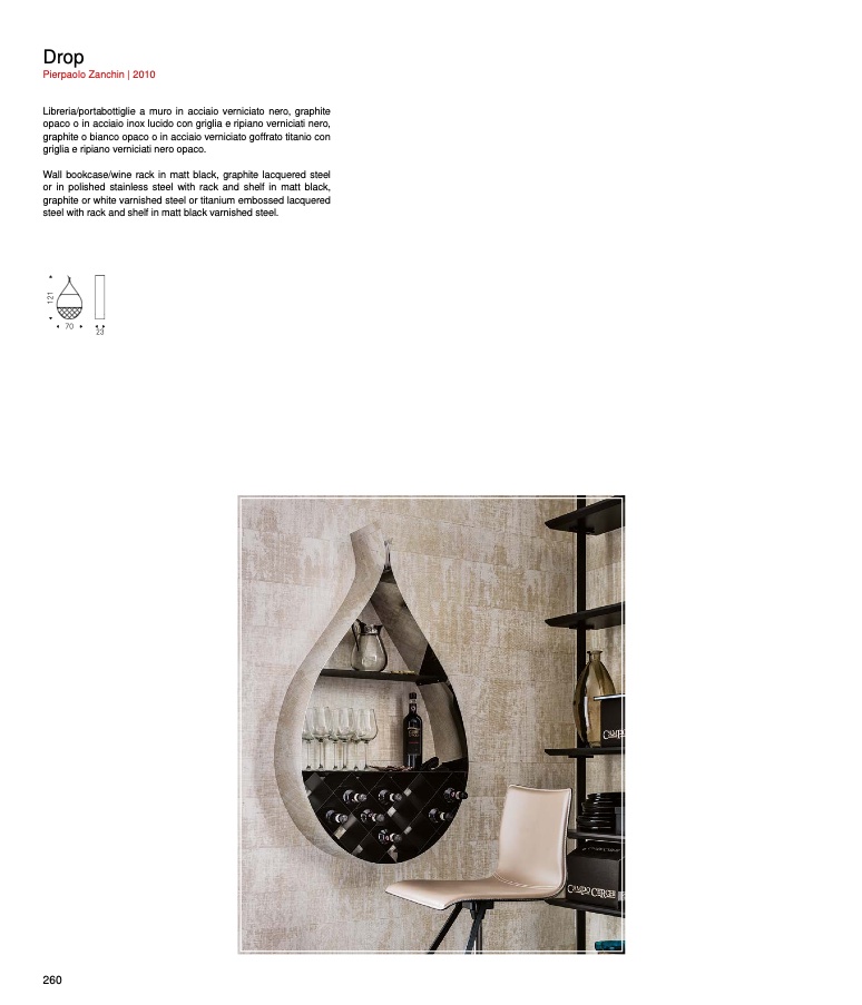 Libreria/portabottiglie a muro in acciaio verniciato nero, graphite