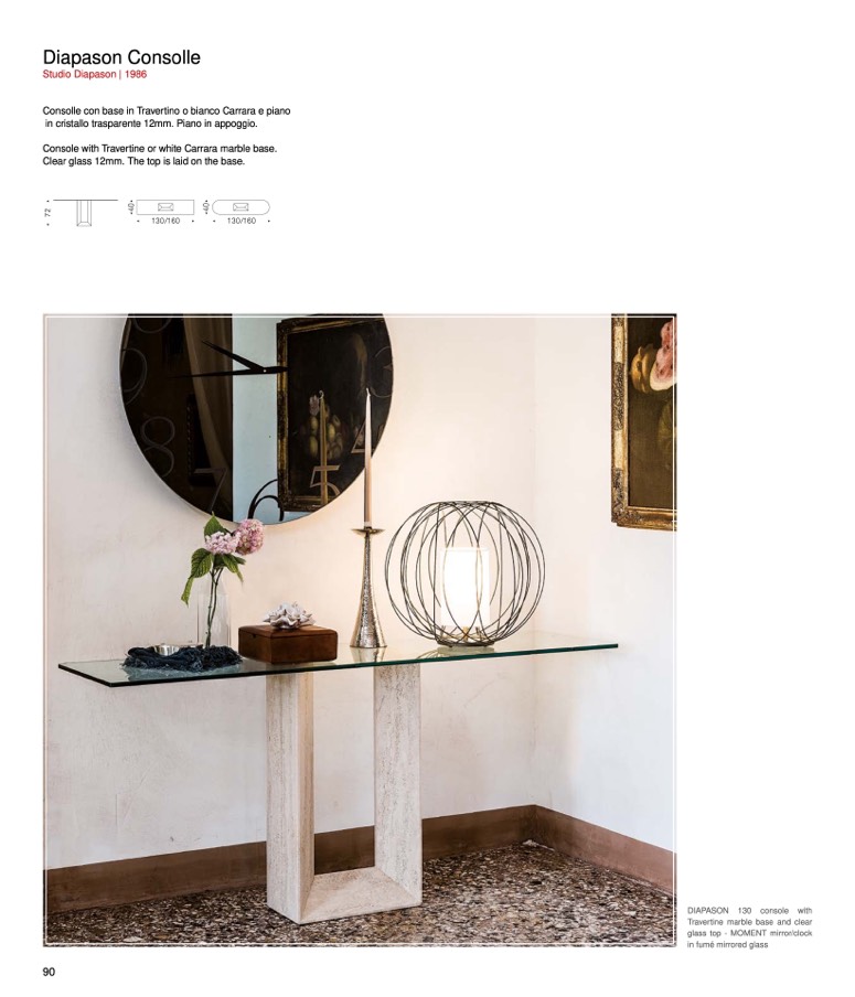 Console with Travertine or white Carrara marble base.