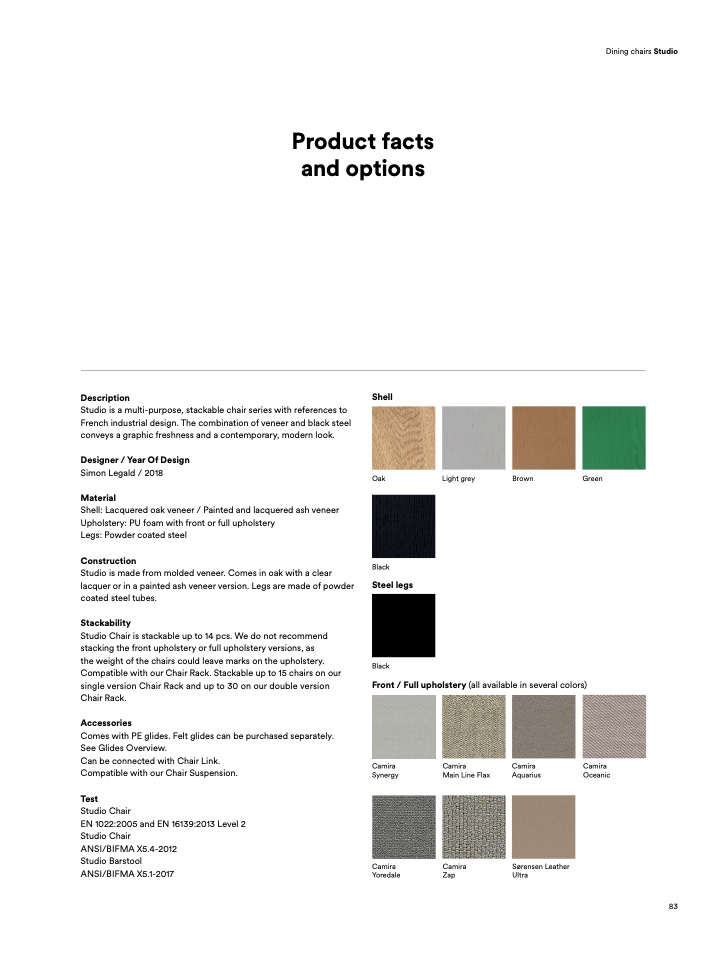 Studio is a multi-purpose, stackable chair series with references to