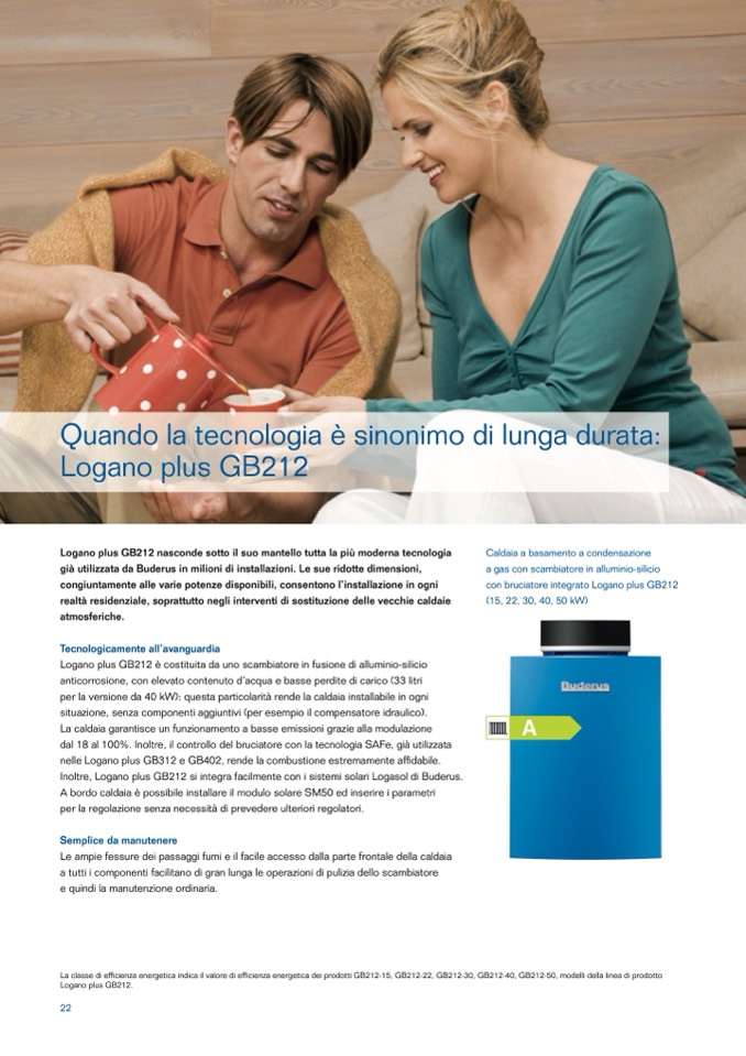 La classe di efficienza energetica indica il valore di efficienza energetica dei prodotti GB212-15, GB212-22, GB212-30, GB212-40, GB212-50, modelli della linea di prodotto