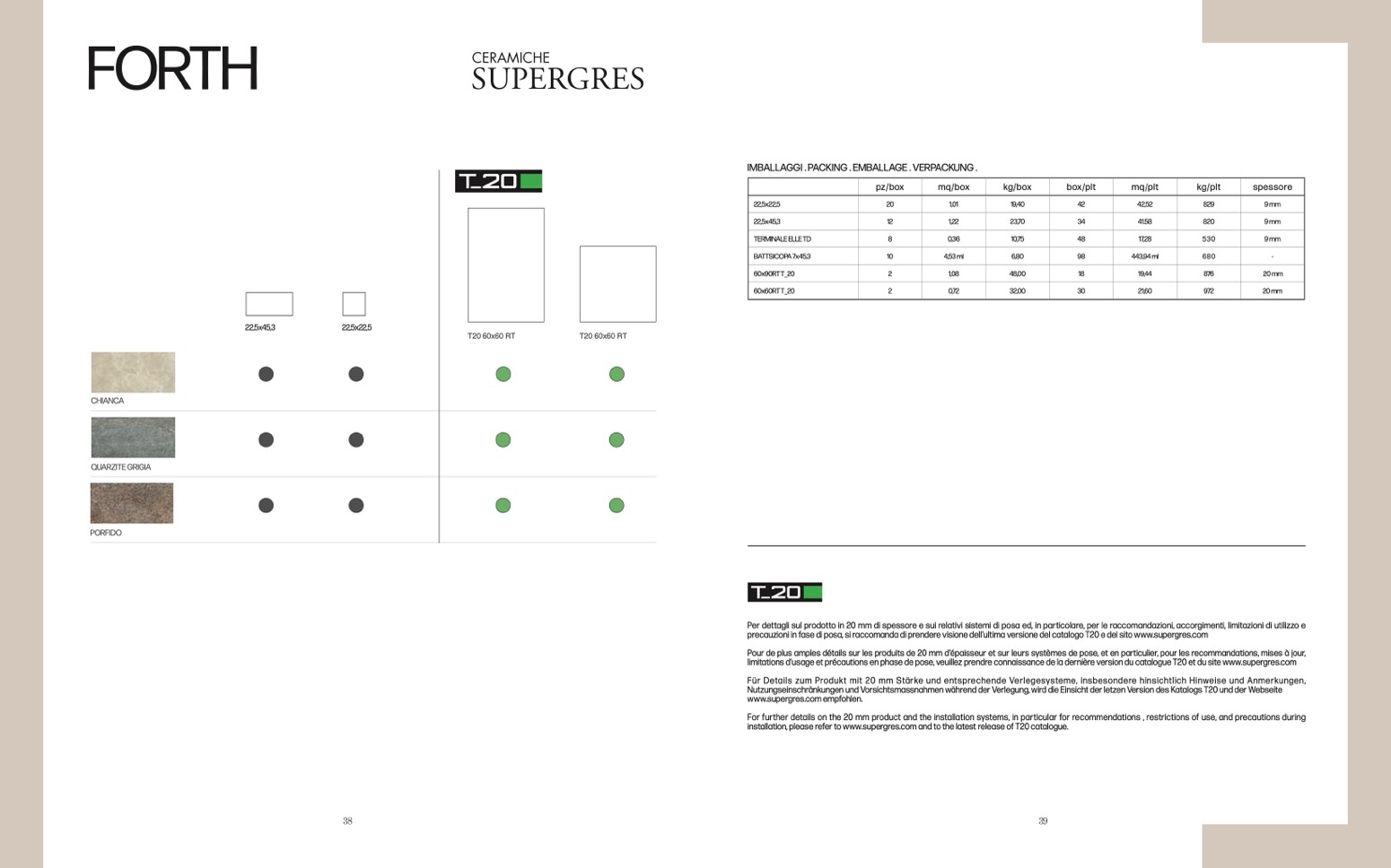 precauzioni in fase di posa, si raccomanda di prendere visione dell’ultima versione del catalogo T20 e del sito www.supergres.com