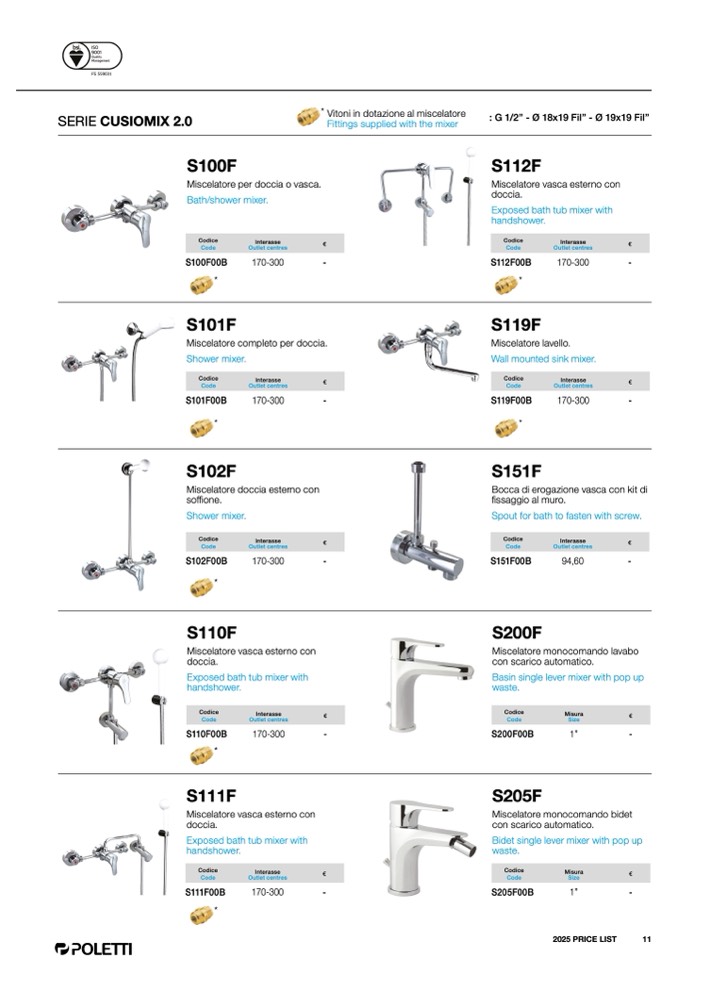 * Vitoni in dotazione al miscelatore