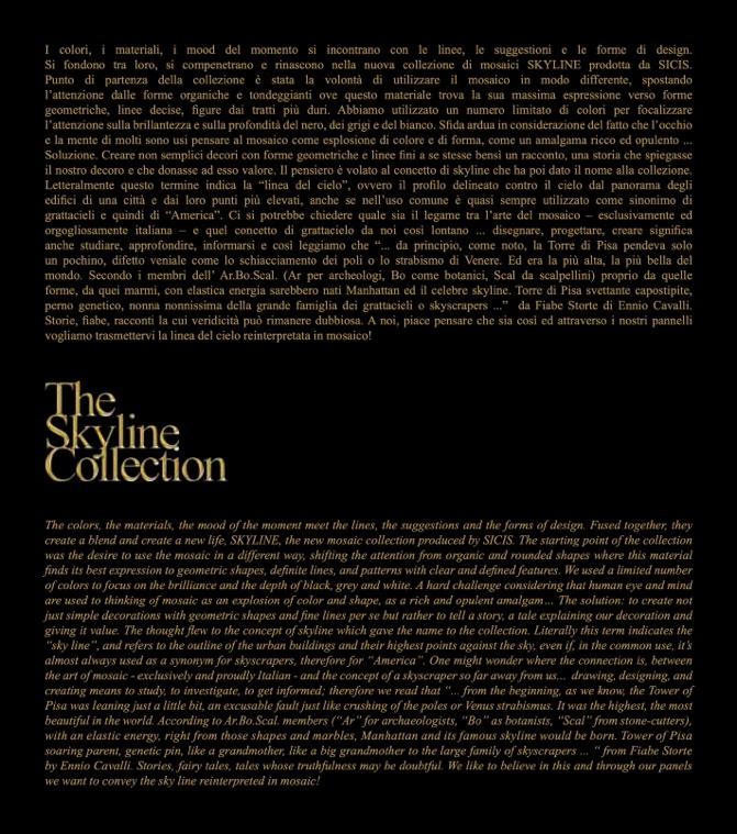 create a blend and create a new life, SKYLINE, the new mosaic collection produced by SICIS. The starting point of the collection
