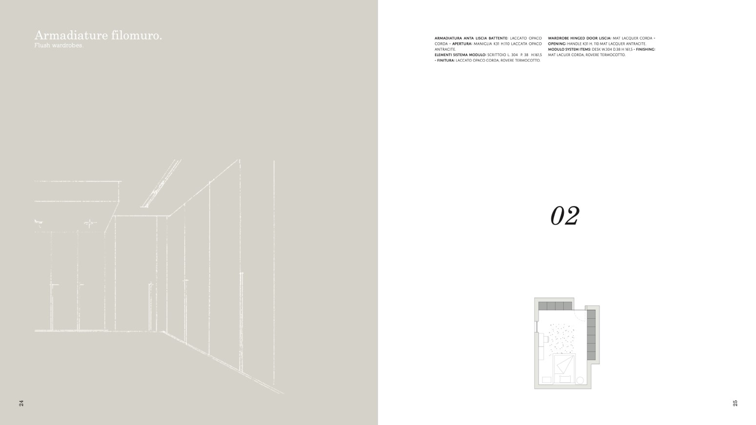 - FINITURA: LACCATO OPACO CORDA, ROVERE TERMOCOTTO.