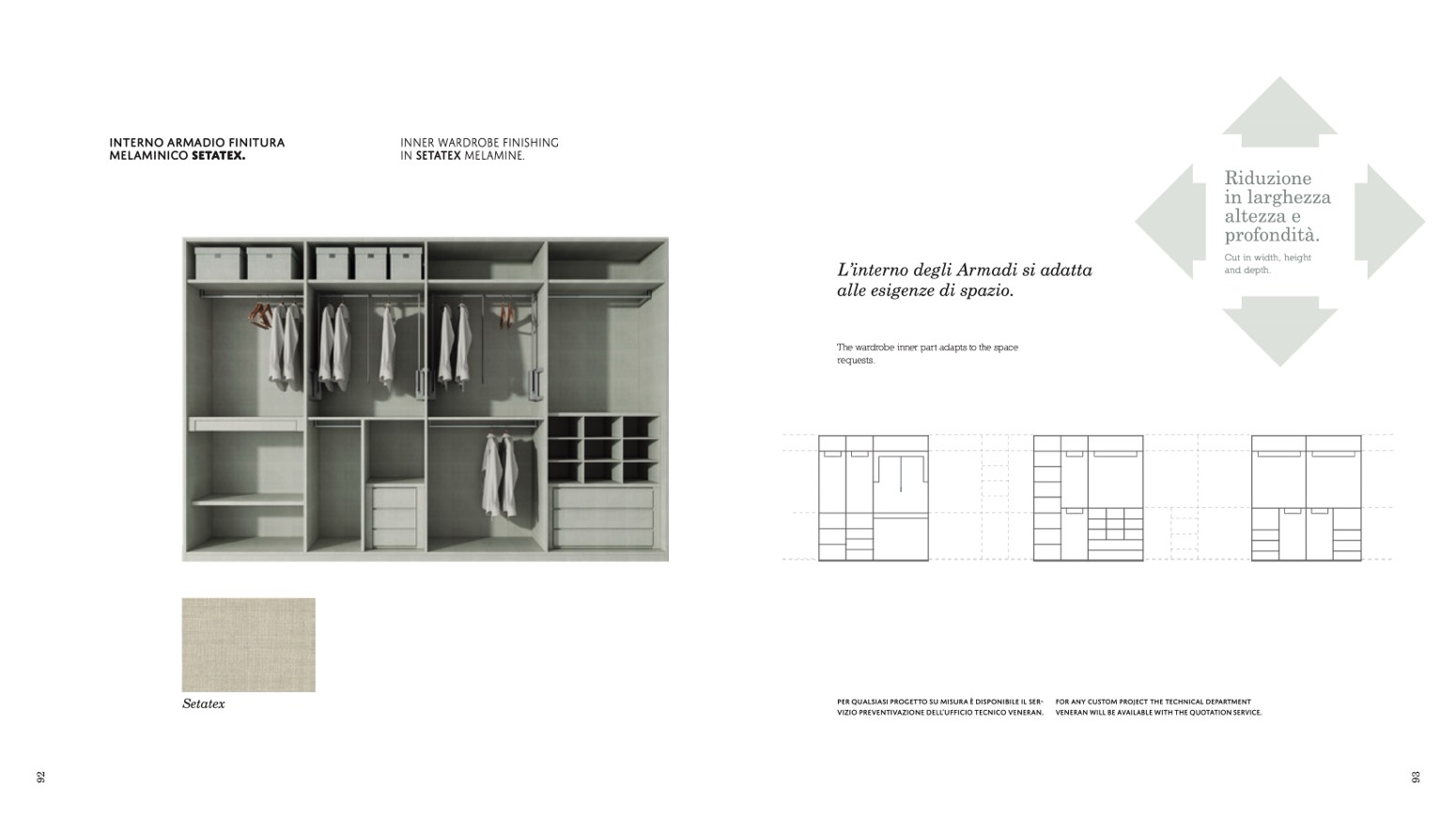 The wardrobe inner part adapts to the space
