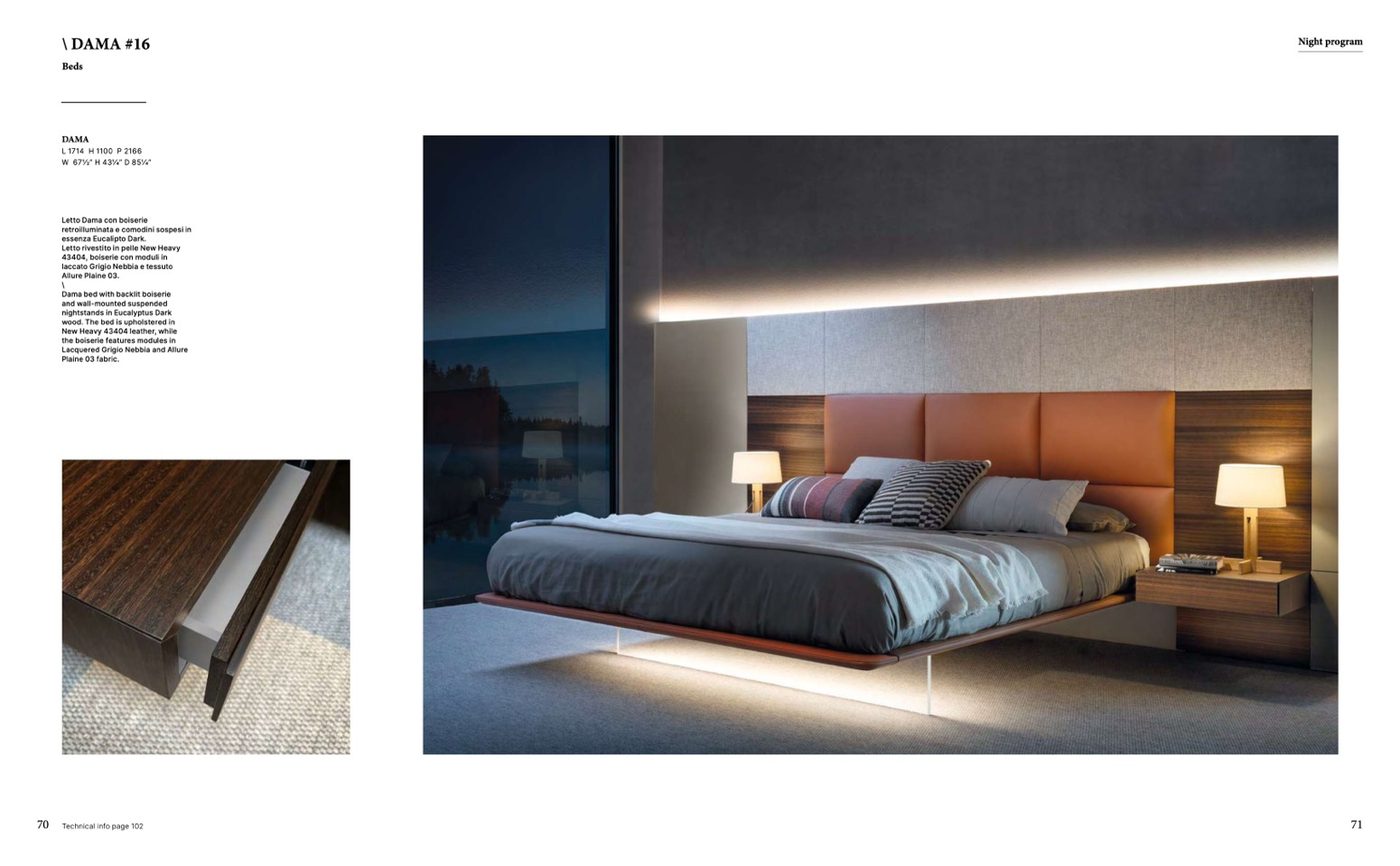 Dama bed with backlit boiserie
