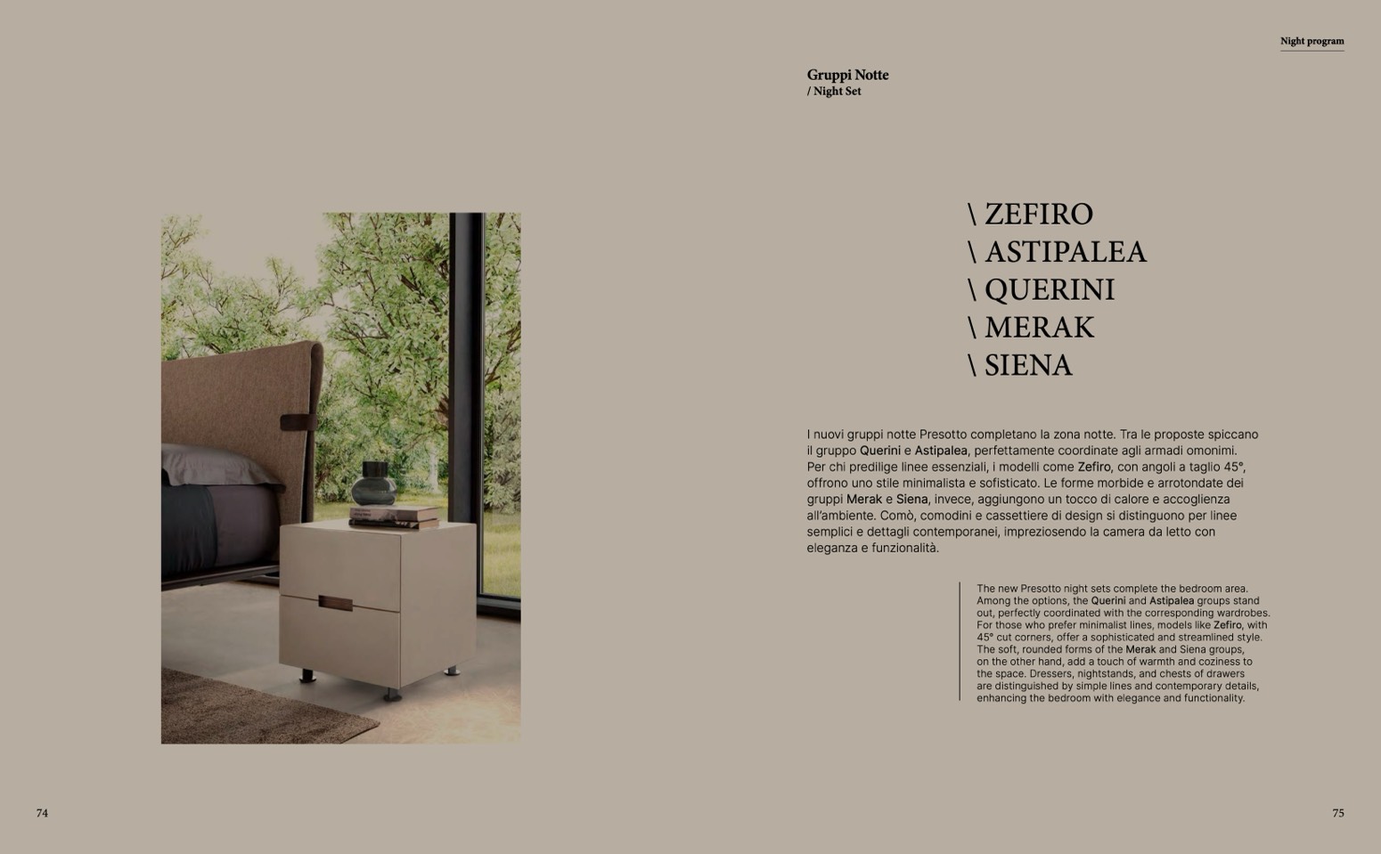 I nuovi gruppi notte Presotto completano la zona notte. Tra le proposte spiccano